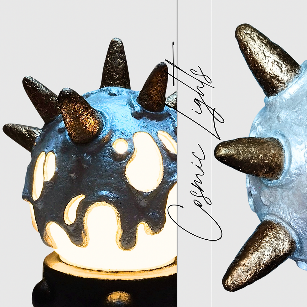 Pixart est une lampe unique. Créée à partir d’une lampe recyclée, elle a été entièrement retravaillée en papier mâché et enduit, laissant apparaître des empreintes de doigts qui soulignent son aspect artisanal.